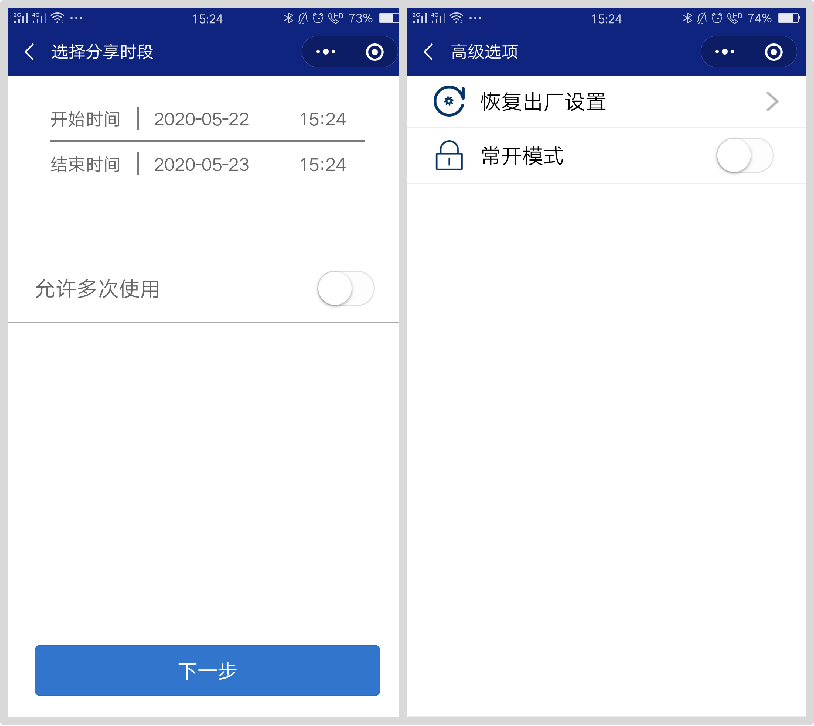 对于家中有客人,需要高频次进出房间时,ND100室内门锁还可以设置为常开模式,不需要指纹验证,方便了进出;当主人不在家中时,也可以设置好时间段与开门次数来进行临时钥匙的分享,适用于需要频繁进入室内的一些场景。这一点的设置也充分考虑了消费者的多种居家状态。