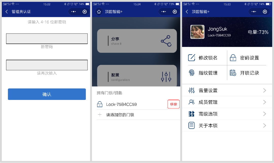微信登陆之后,完成管理员密码设置,便可以进行修改锁名、指纹管理、提取开锁记录等一系列操作。