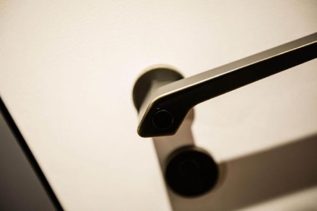 以本次高定展上展示的3款室内指纹锁为例,对传统门锁五金实现智能化升级,在把手上配置FPC半导体指纹锁传感器,利用指纹识别解锁,将”告别钥匙“从入户到室内进行到底;同时支持蓝牙链接,通过微信小程序管理操作,可以远程授权临时钥匙,自由设置开门时间与次数,极大提高了居住者的隐私安全感。