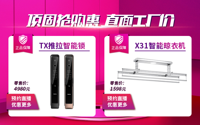这么多惊喜福利活动,只要你扫码参加活动就可以享受到!另外,多款爆品智能锁、时尚轻奢晾衣机、精美耐用卫浴五金等同时参与线上活动,只要你预交100元的定金就可以锁定活动优惠。当然,惊喜不止于此,4月18日-19日19:30,来顶固,看直播,抢豪礼,非常时期非常享受,顶固带你一起直播“云”享受!