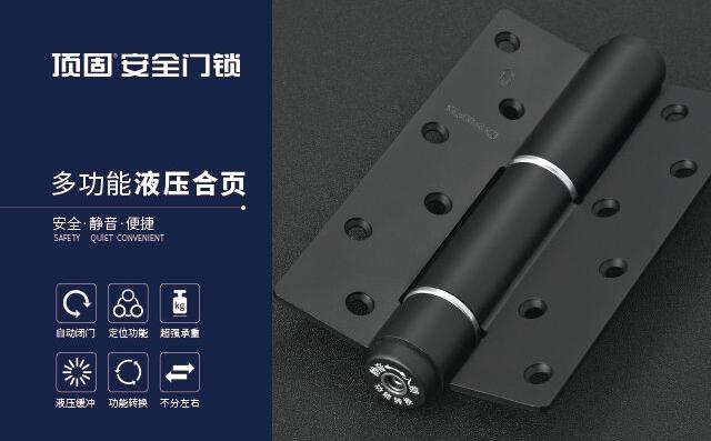 顶固安全门锁一直关注人们的家居生活安全,为了从根源上解决用力开门、关门造成的伤害与噪音,全新推出顶固多功能液压合页,给您带来安全、安静、便捷的开门和关门体验。