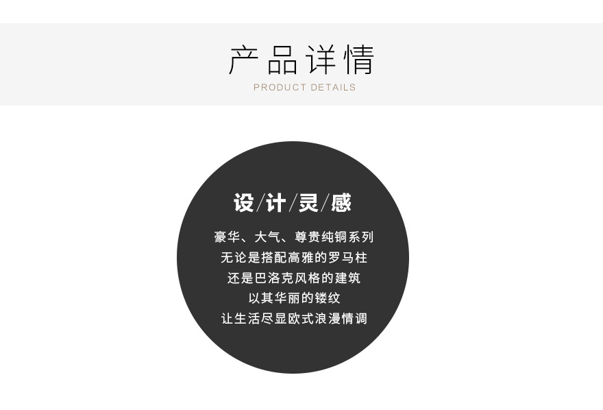 实心精铸把手,造型优雅、线条婉约,结构精密,手感厚实,防磨防腐,坚固耐用,精益求精的做工品质
