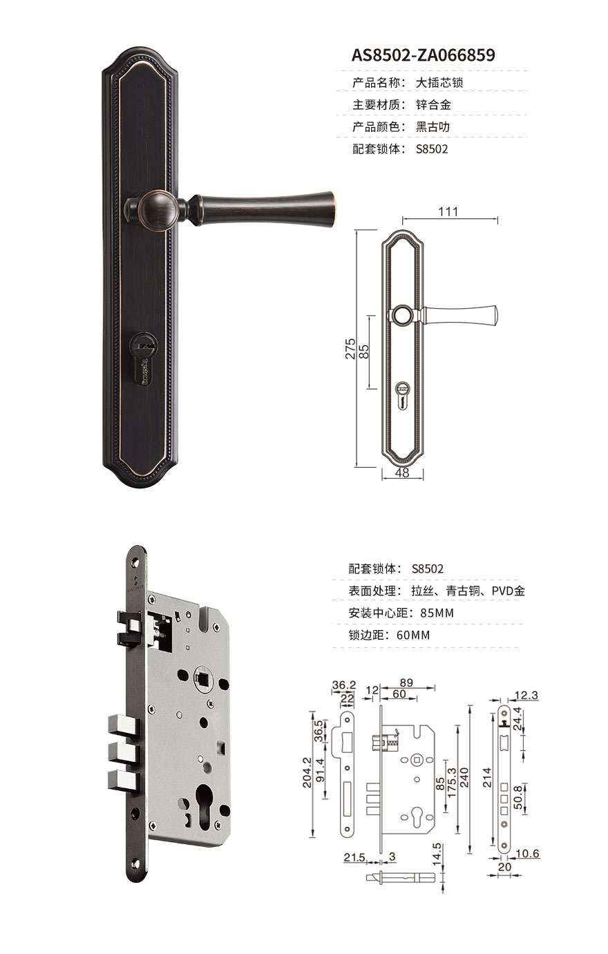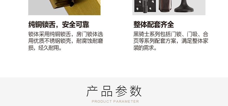 锁体采用纯铜锁舌,房门锁体选用优质不锈钢锁壳,耐腐蚀耐磨,经久耐用。