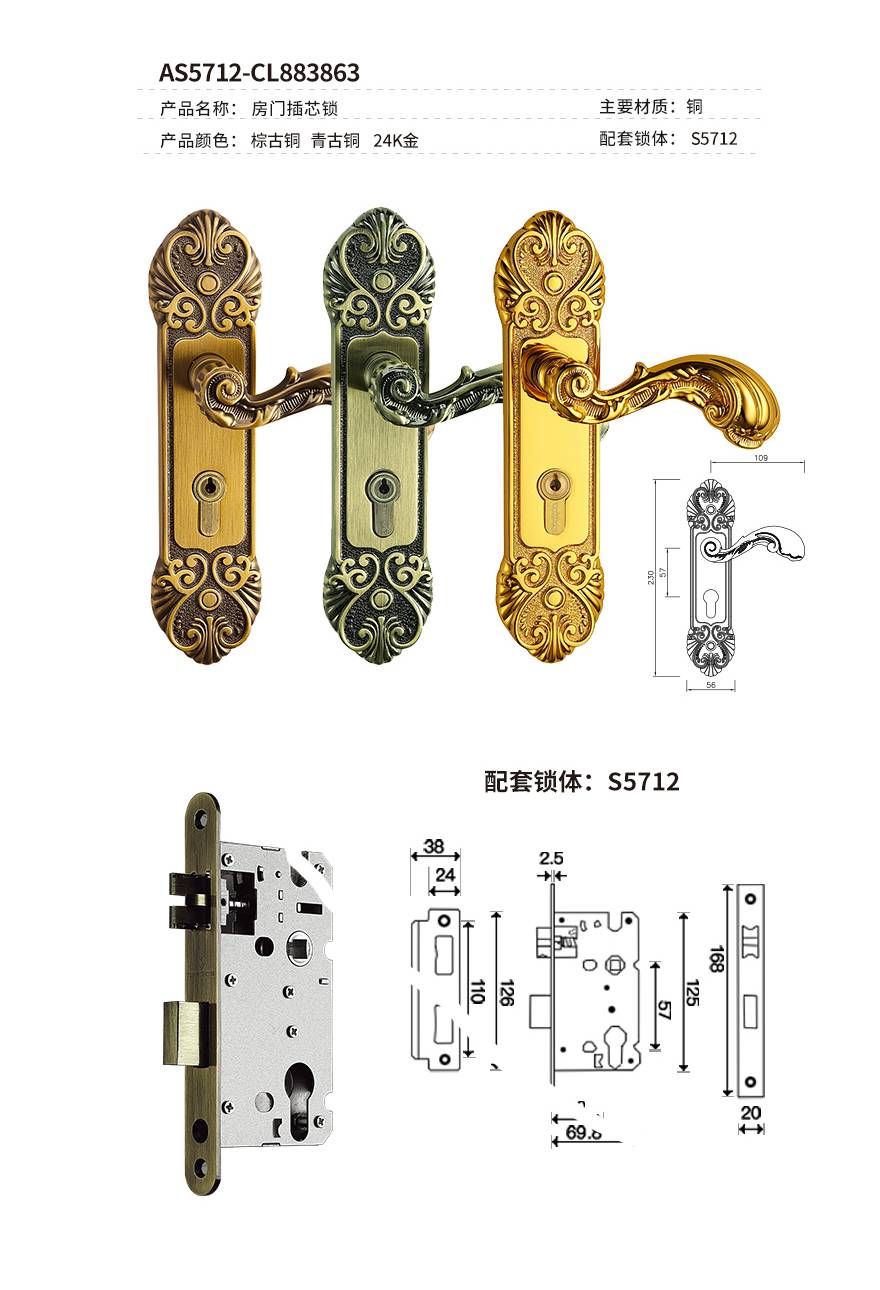 卢浮宫房门插芯锁