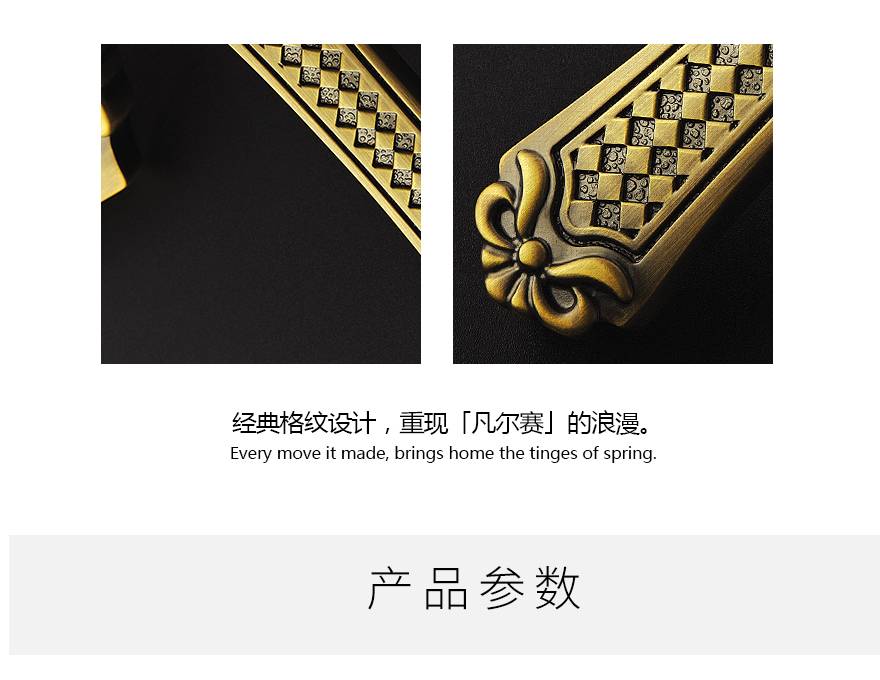 经典格纹设计,重现凡尔赛浪漫,结构精密,手感厚实,防磨防腐,坚固耐用,精益求精的做工品质,铸造坚实而耐用的锁具。