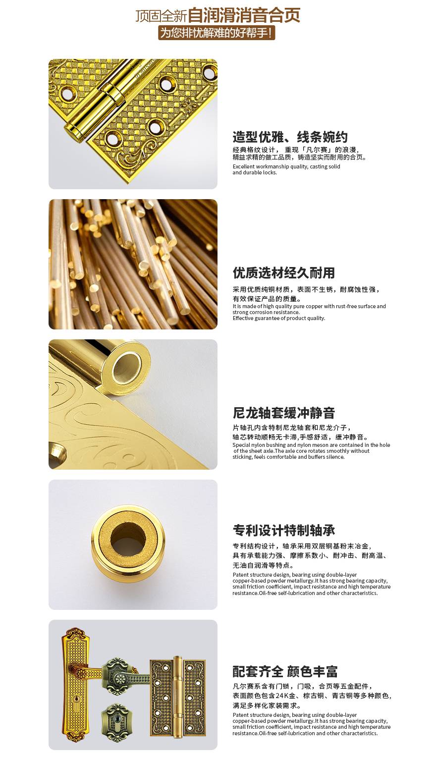 顶固全新自润滑消音合页,为您排忧解难的好帮手!经典本本格纹设计,重现凡尔赛的浪漫,精益求精的做工品质,铸造坚实而耐用的合页。