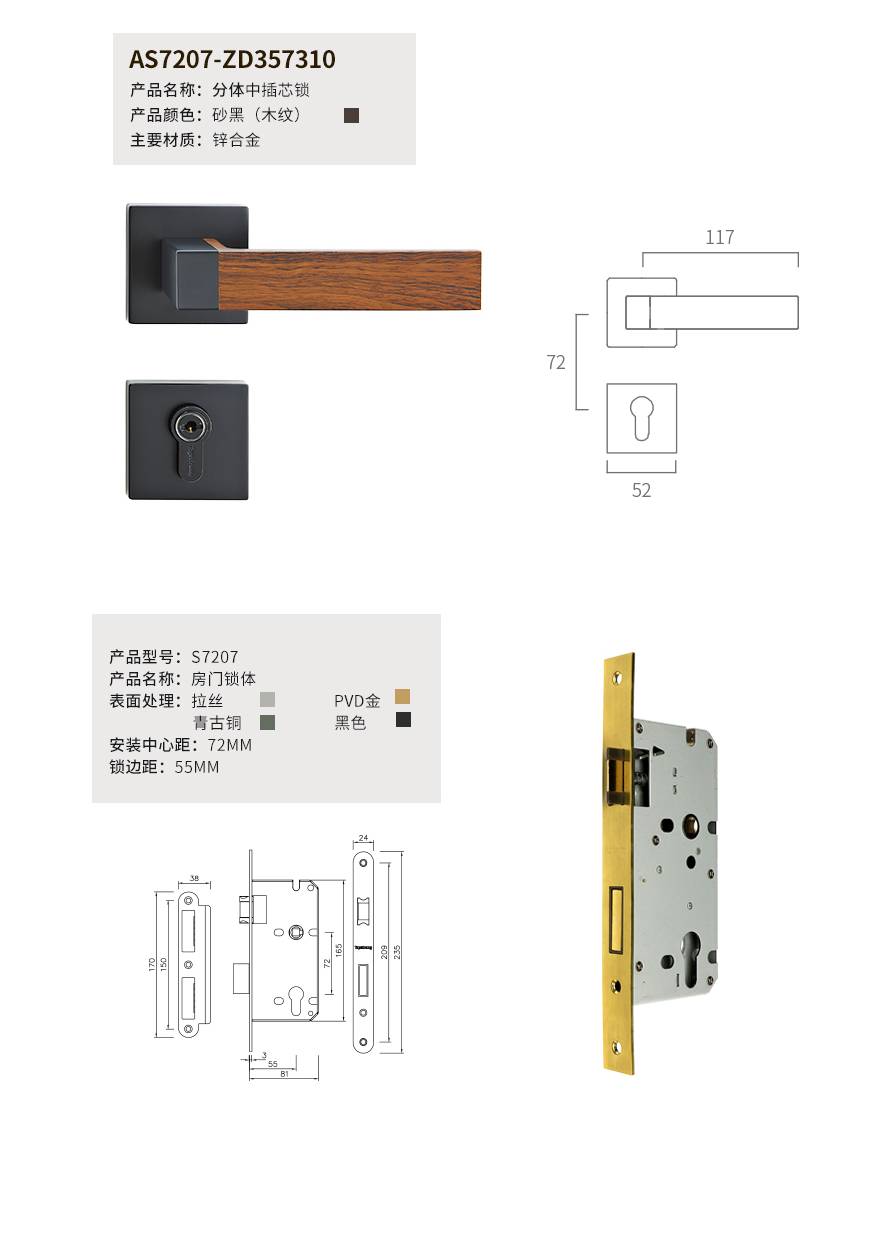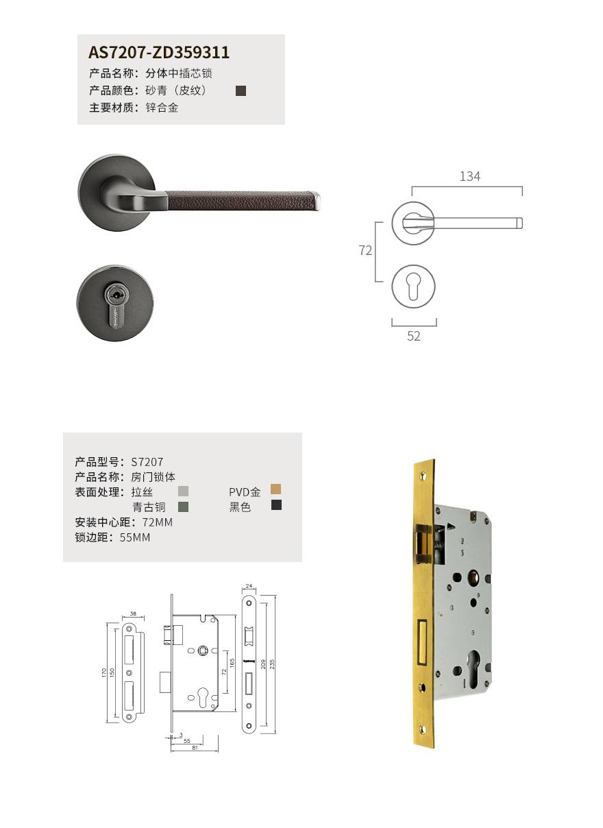 格林分体中插芯锁