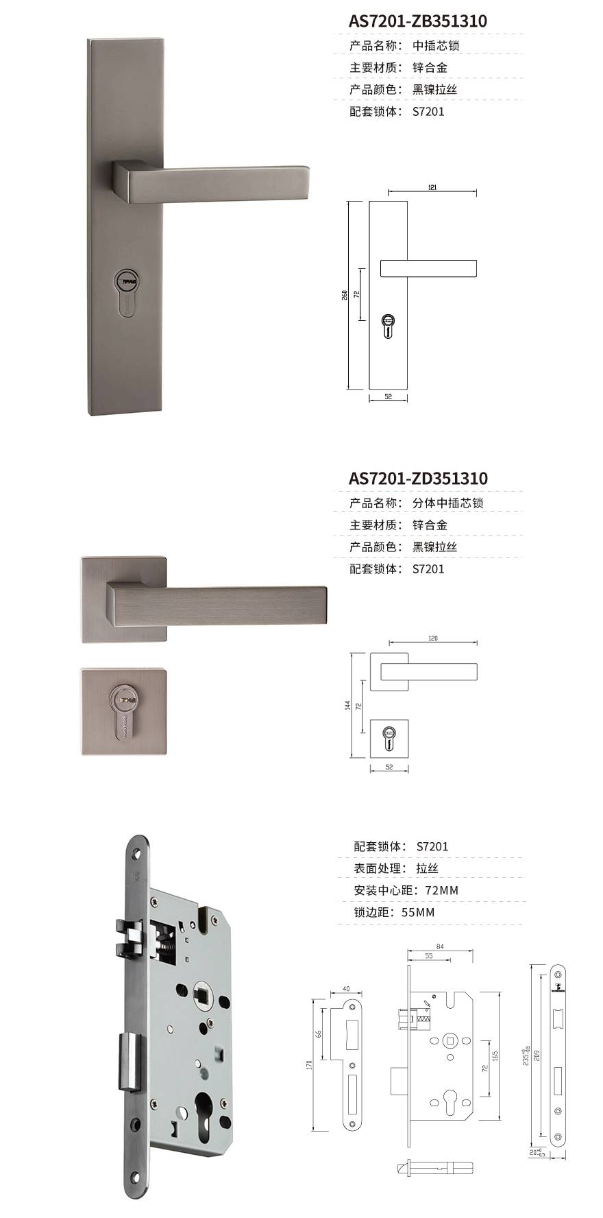 面板和执手采用高强度的锌合金压力铸造,结构紧密,手感厚实