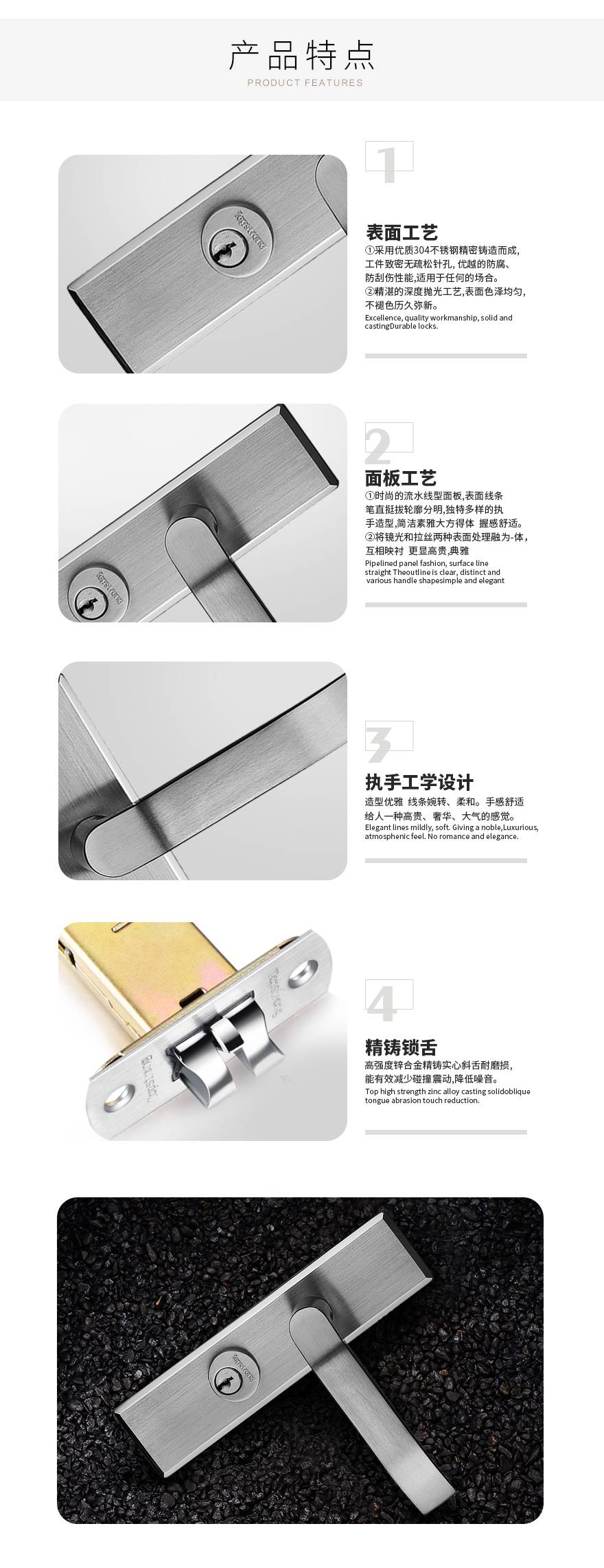 全系列均配置顶固三叉静音锁体,利用金属三叉斜舌减震消音,关门顺畅静音。