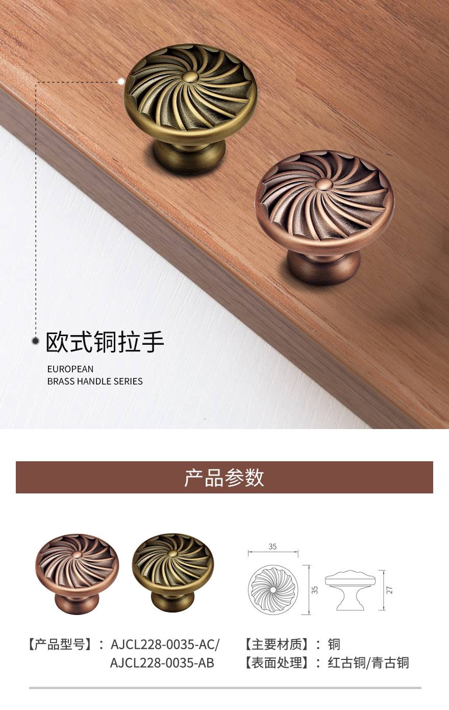 欧式铜拉手AJCL228