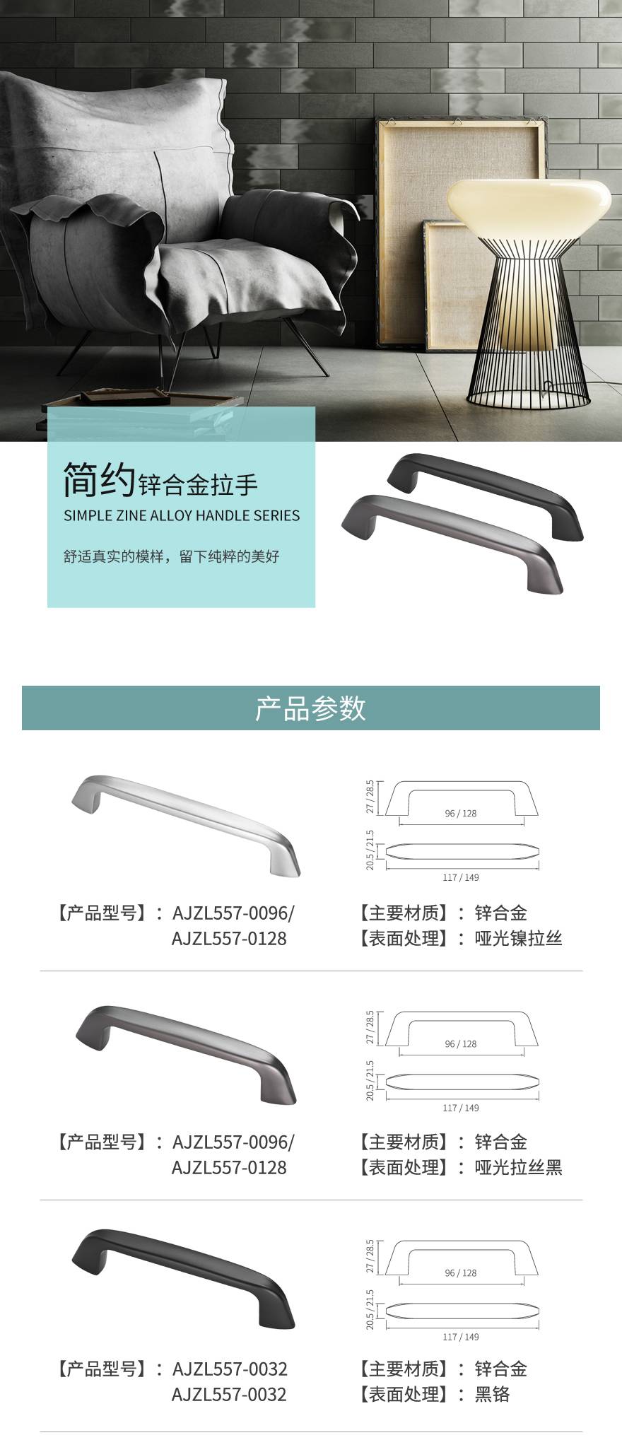 简约锌合金拉手AJZL557-0096