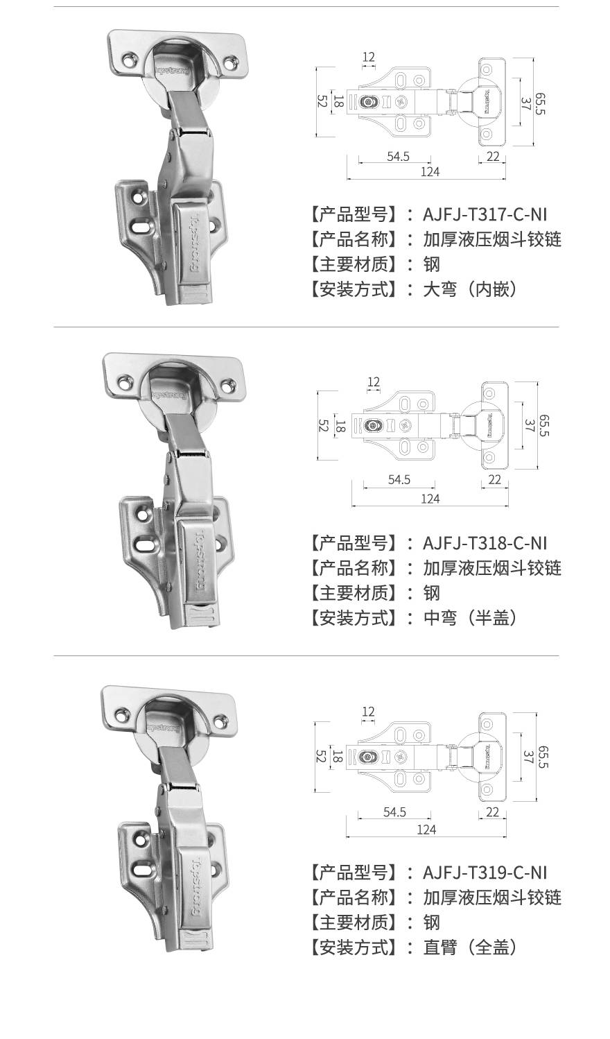 加厚液压烟斗铰链AJFJ-T317