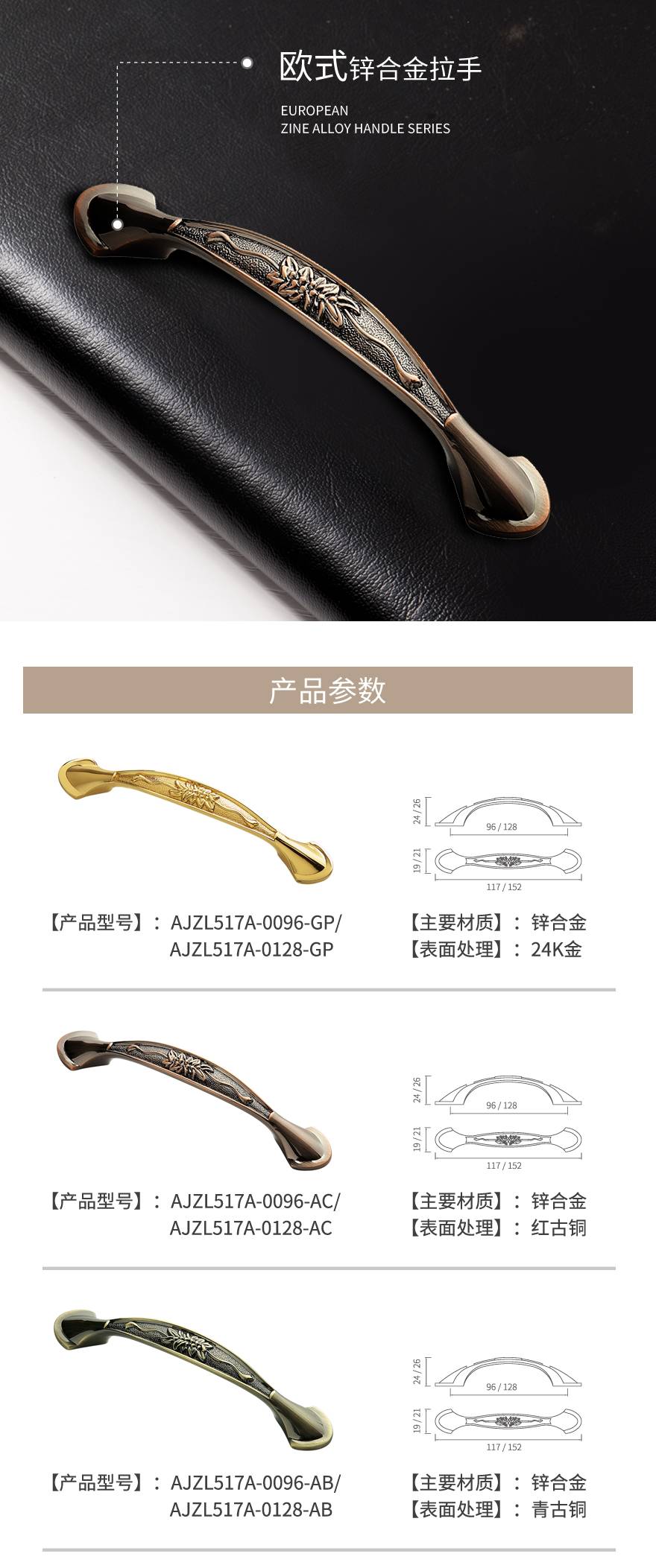 欧式锌合金拉手AJZL517A