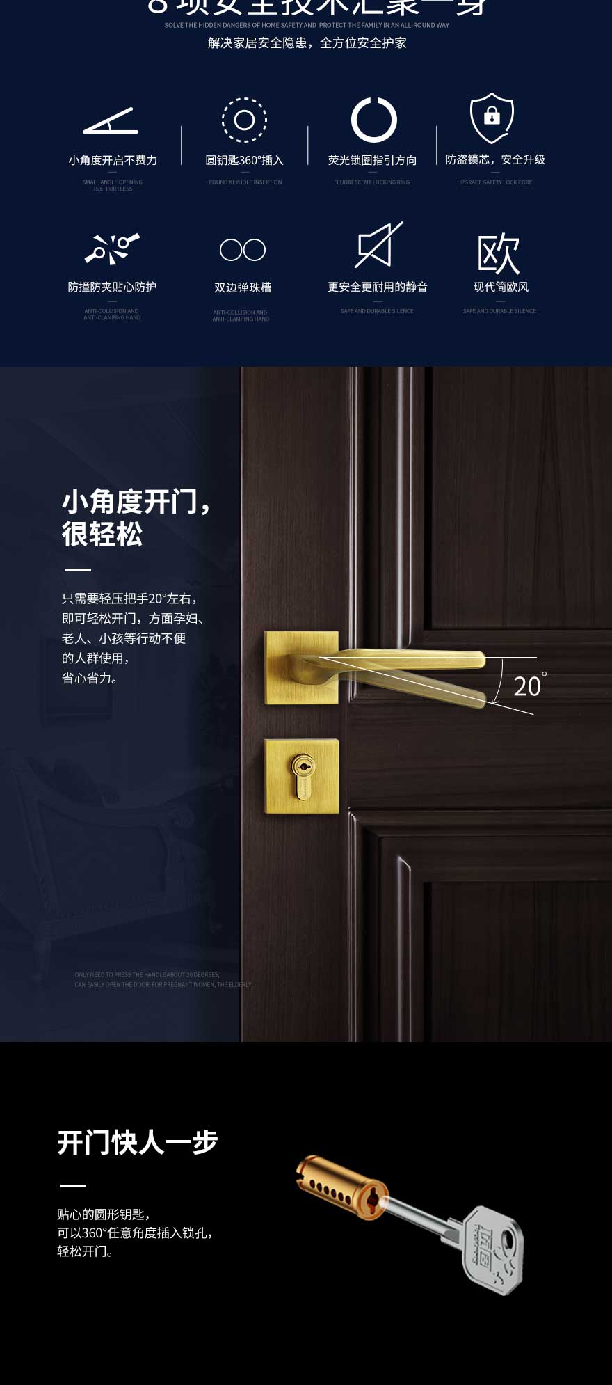 时尚与艺术的糅合,光滑流畅的线条触感缔造灵动的舞曲,简洁的造型在不经意间流露出设计的结构美感。顶固安全门锁极光系列,旋转的动态犹如极光般柔美绚丽,复古铜的绽放、咖啡古铜的夺目,不着痕迹地彰显着高雅独立的品味,演绎着艺术中的轻奢气质。