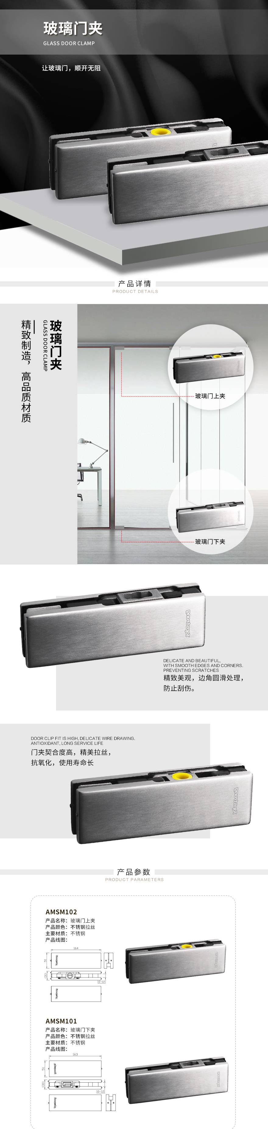 玻璃门下夹AMSM101/102