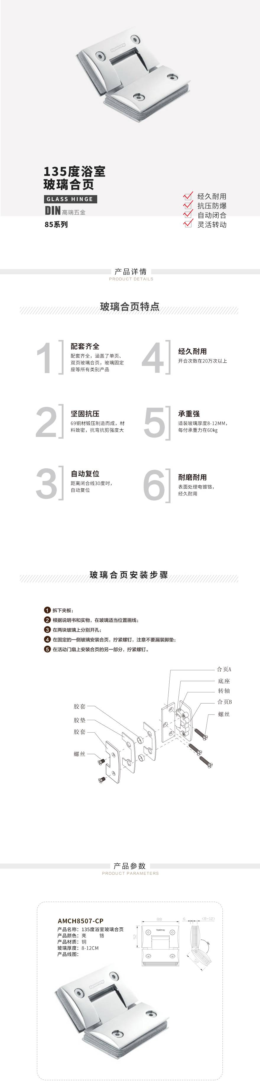 135度浴室玻璃合页