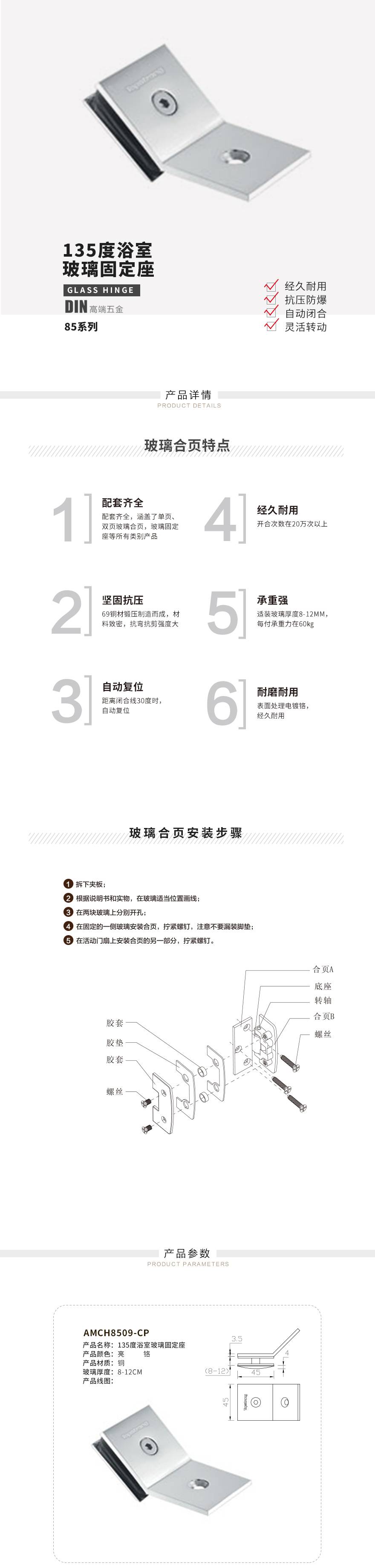 135度浴室玻璃固定座
