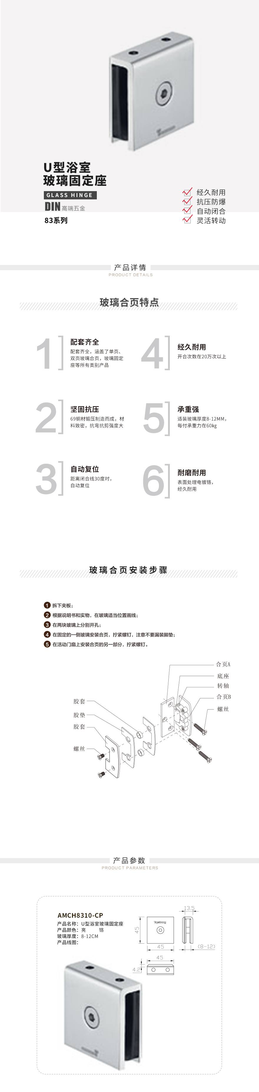 U型浴室玻璃固定座